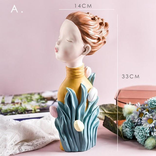 2020 New Arrial Nordic Ins Home Decorations People Statues Resin Figurines Flower Woman Sculpture Living Room Decoration Crafts